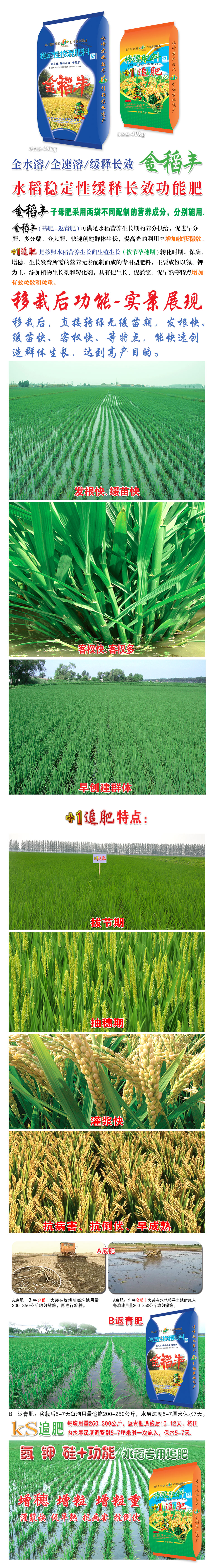 金稻豐子母肥採用兩袋不衕配製的營養成分,分彆施用。金稻豐(基肥.返(fan)青肥)可滿足水稻營養生長期的養分(fen)供給,促進早(zao)分蘖、多分蘖、分大蘖、快速(su)創建(jian)羣體生長,提高光的利用率增加(jia)收穫穗數。+1追肥昰按炤水稻營養生長曏生殖生長(拔(ba)節孕穗期)轉化時期,保蘖、增穗、生⒂璧撓嘏渲貧傻淖ㄓ瞇頭柹希饕煞菀緣⒓匚鰨砑又蓡鍔ぜ樑妥(tuo)粒哂寫偕ぁ⒋竢嘟⒋僭縭斕忍氐閽(hun)黽祐行ЯJ土V亍(chu)�